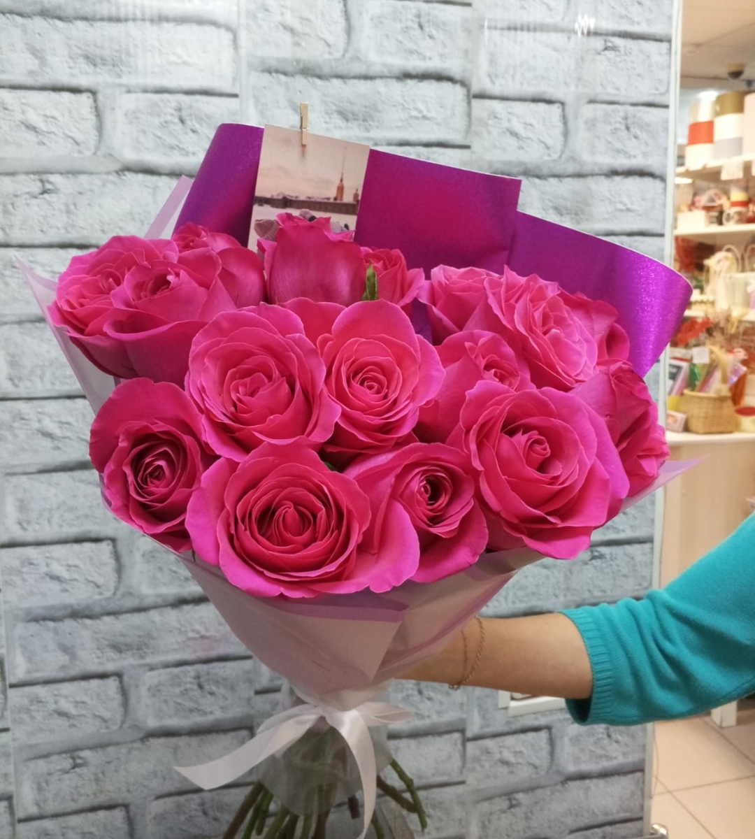17 малиновых роз Эквадор 60см в красивой упаковке