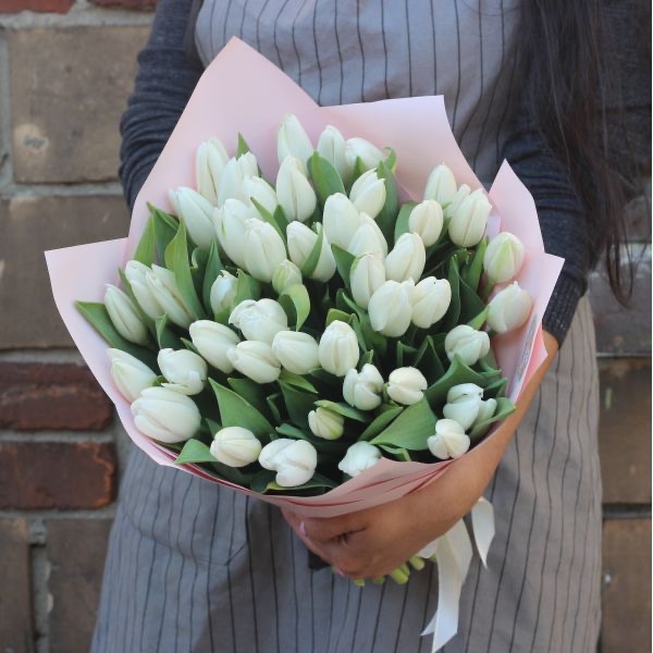 51 белый тюльпан в красивой упаковке