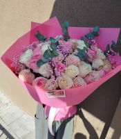 51 роза Эквадор 60-70см с зеленью В связи с сезонностью цветов, состав букета может быть изменён на усмотрение флориста. Цветовая гамма и стилистика букета остаются прежними.