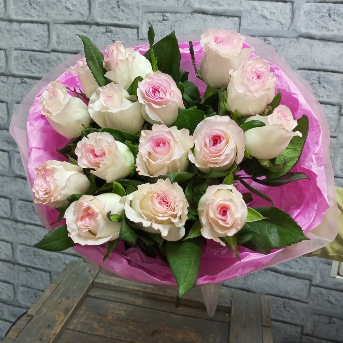 Букет из 15 роз Эквадор, 70 см. В нежной упаковке