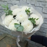 В упаковке 5 или 7 шт. Белая одноголовая хризантема - воплощение изысканности и элегантности