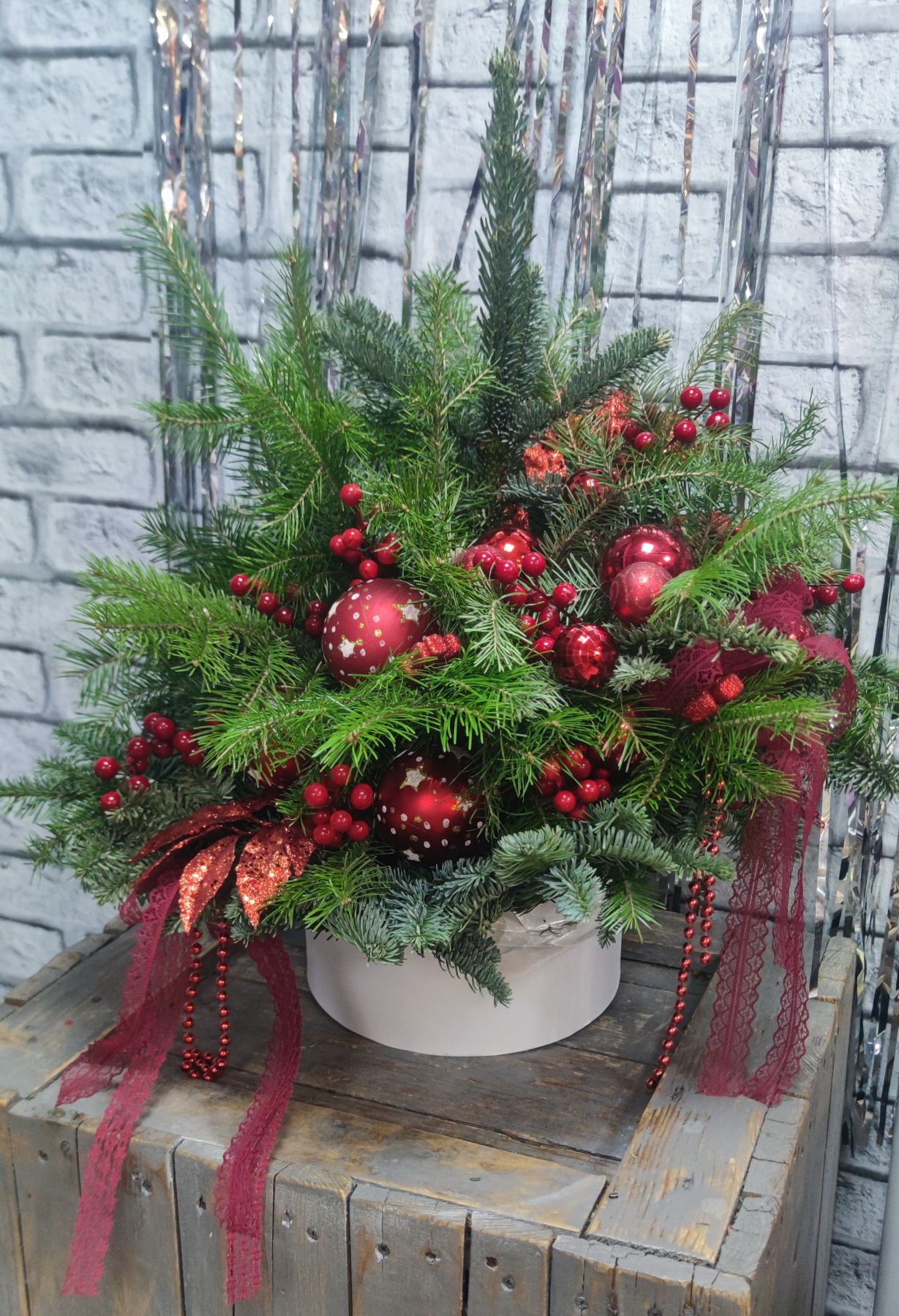 Роскошная елочка из пихты и нобилиса в тематике года Огненной Дошади 2026 Размер 65*60
