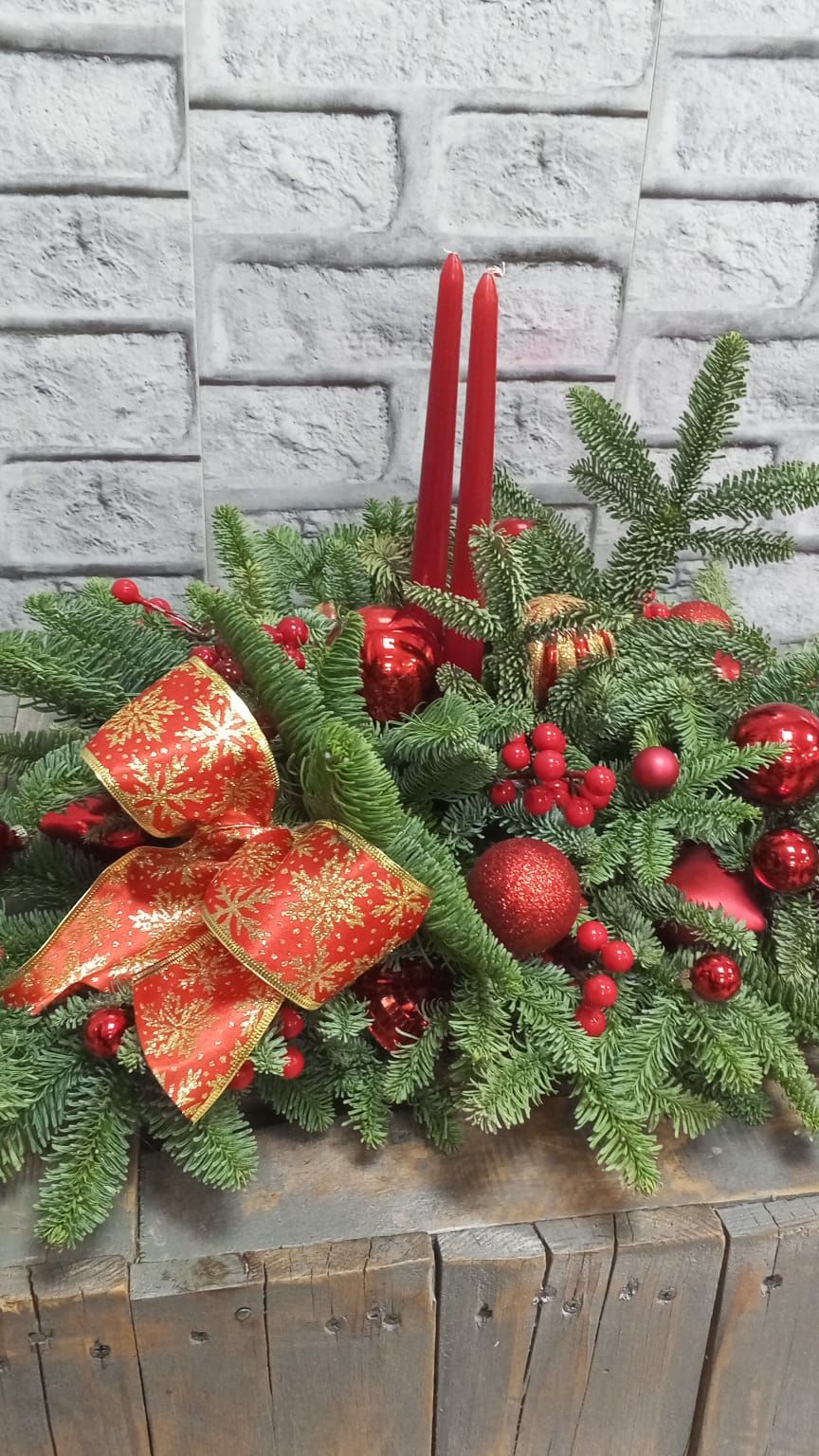 В составе нобилис , Пихта, свечи,новогодние аксессуары. Заказ на данную композицию принимается не менее, чем за 1 день до доставки.размер 45*35см
