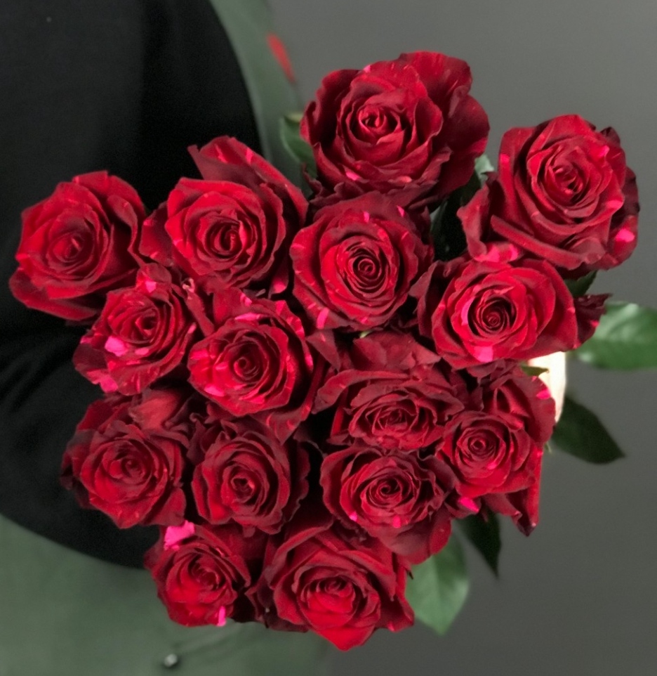 Необычный сорт бордовых роз Эквадор 80 см высотой под атласные ленты