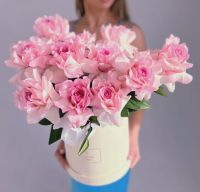 11 роз в шляпной коробочке