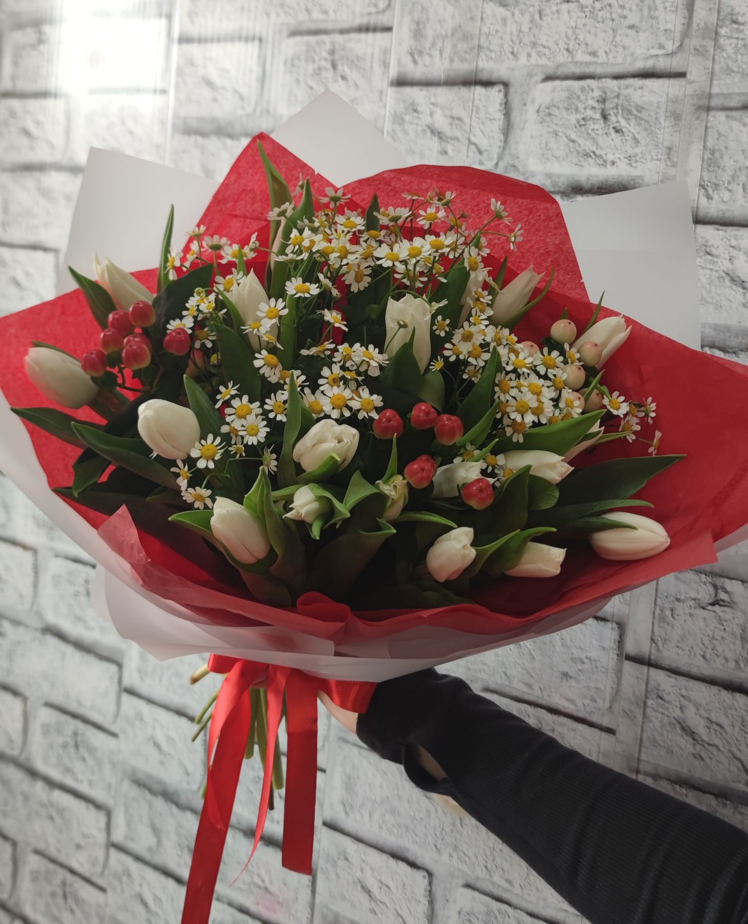 Роскошный сборный букет для особенных эмоций. По сортам возможны замены в связи с сезонностью, цветовая гамма и стилистика букета остаются прежними