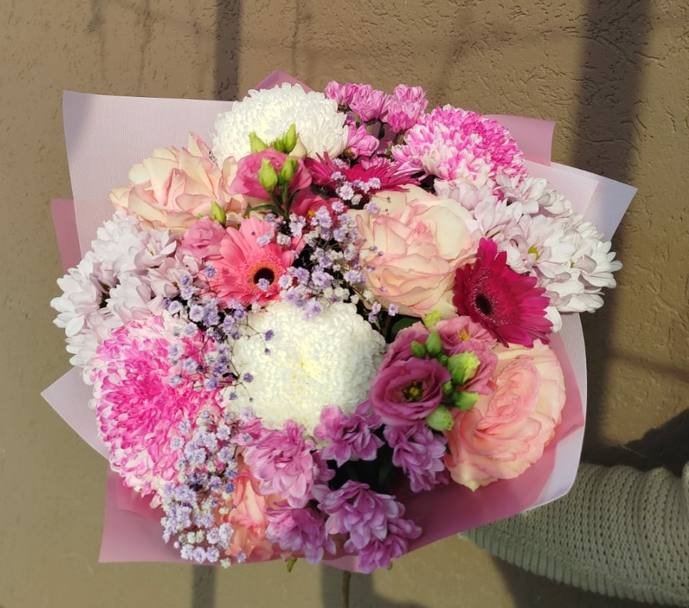 В составе кустовые и крупные хризантемы, эустомы, альстромерии, гипсофилы.