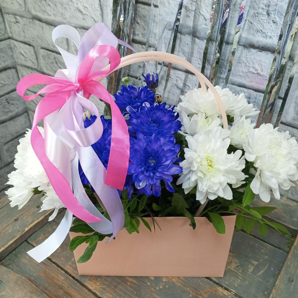 Цветовую гамму возможно указать в комментариях заказа, яркая или нежная. Внутри находится флористическая губка-оазис, напитанная водой