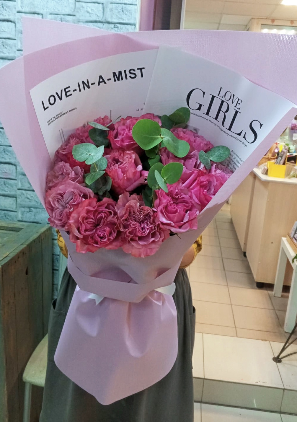 Сочное Моно с пионовидной розой Country Blues 15 шт с эвкалиптом